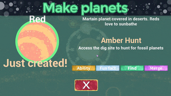 What a cute game (* . *) I had a lot of fun making the planets, the crystal planet and the mars planet are my favorites. I love that you have moons too! they look so adorable going around the planet